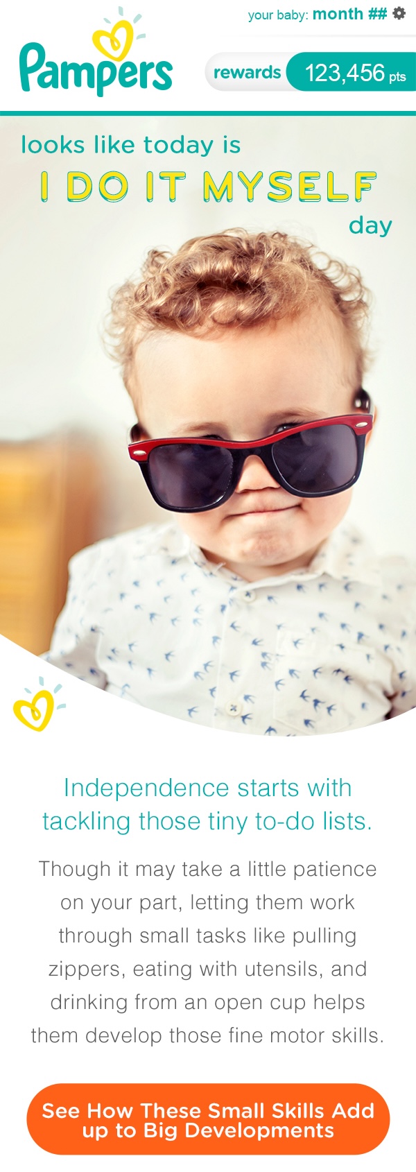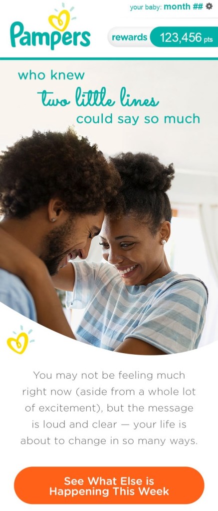 Our agency had established an insights-based email program for Pampers to provide touch points during the prenatal and childrearing journey, from weeks 10-40 of pregnancy through early toddlerhood. Pampers sought to expand on this program, requesting additional emails at both the beginning and end.